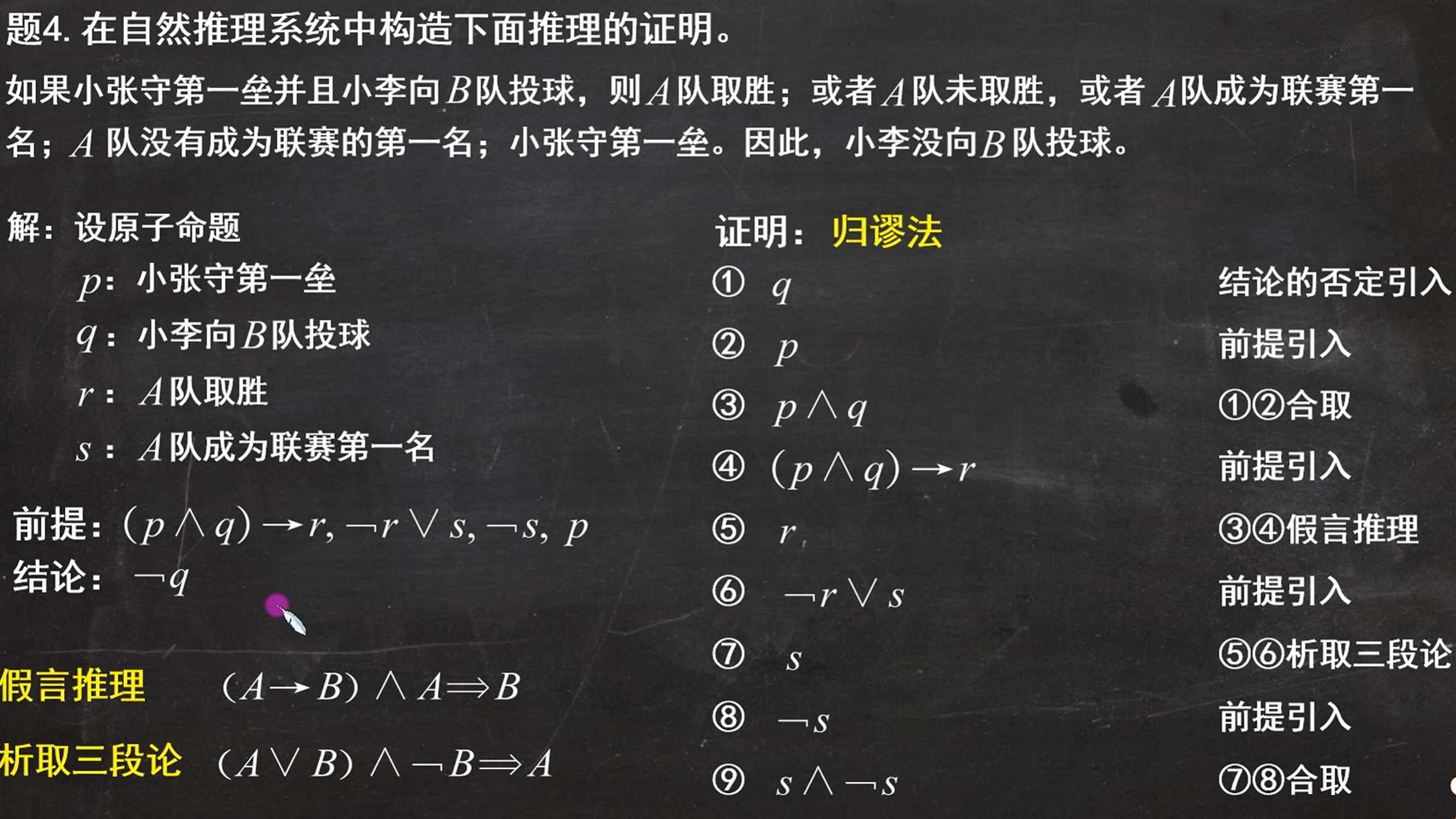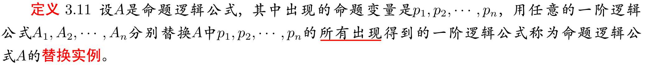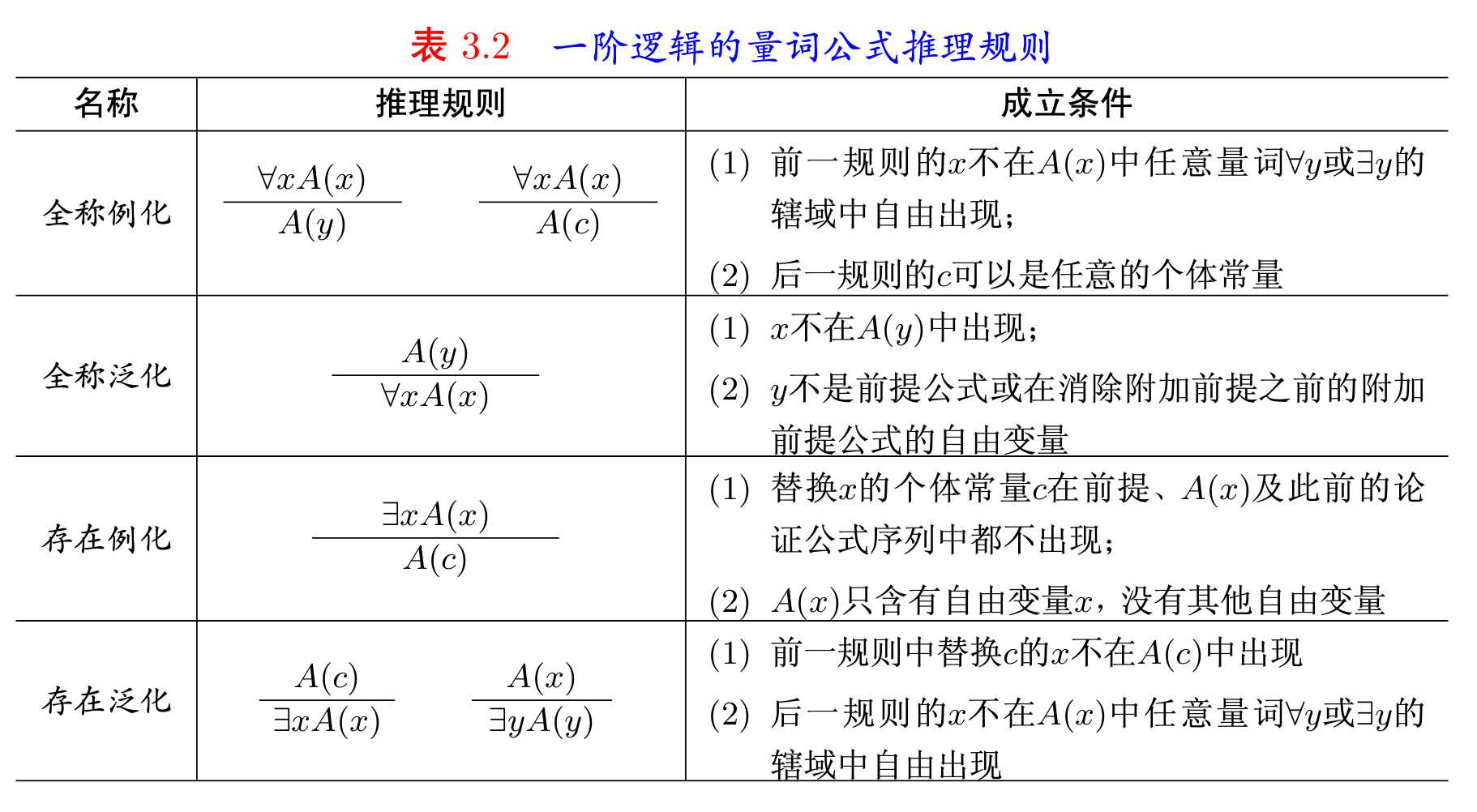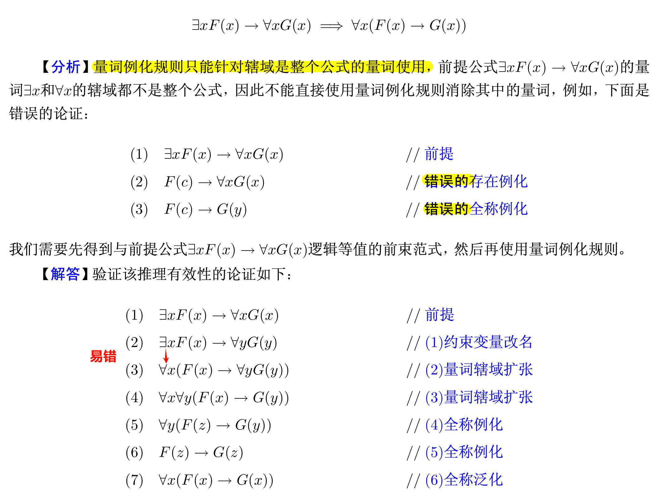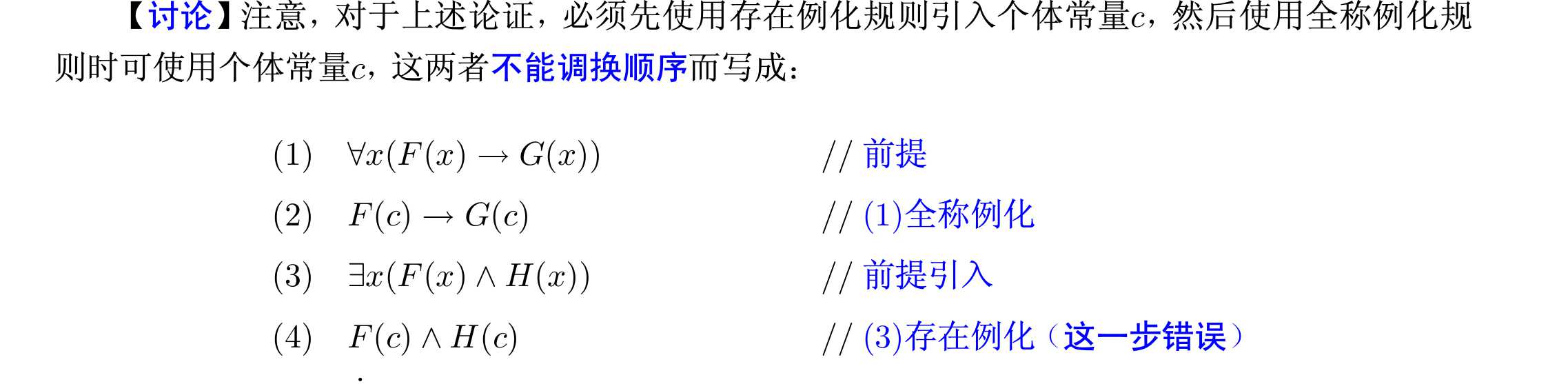 - 必须先使用存在例化规则引入个体常量c,然后使用全称例化规则时可使用个体常量c