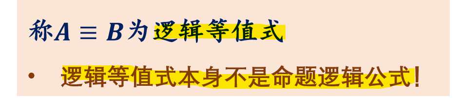称命题逻辑公式A和B逻辑等值(logically equivalent),简称等值,记为A=B,如果