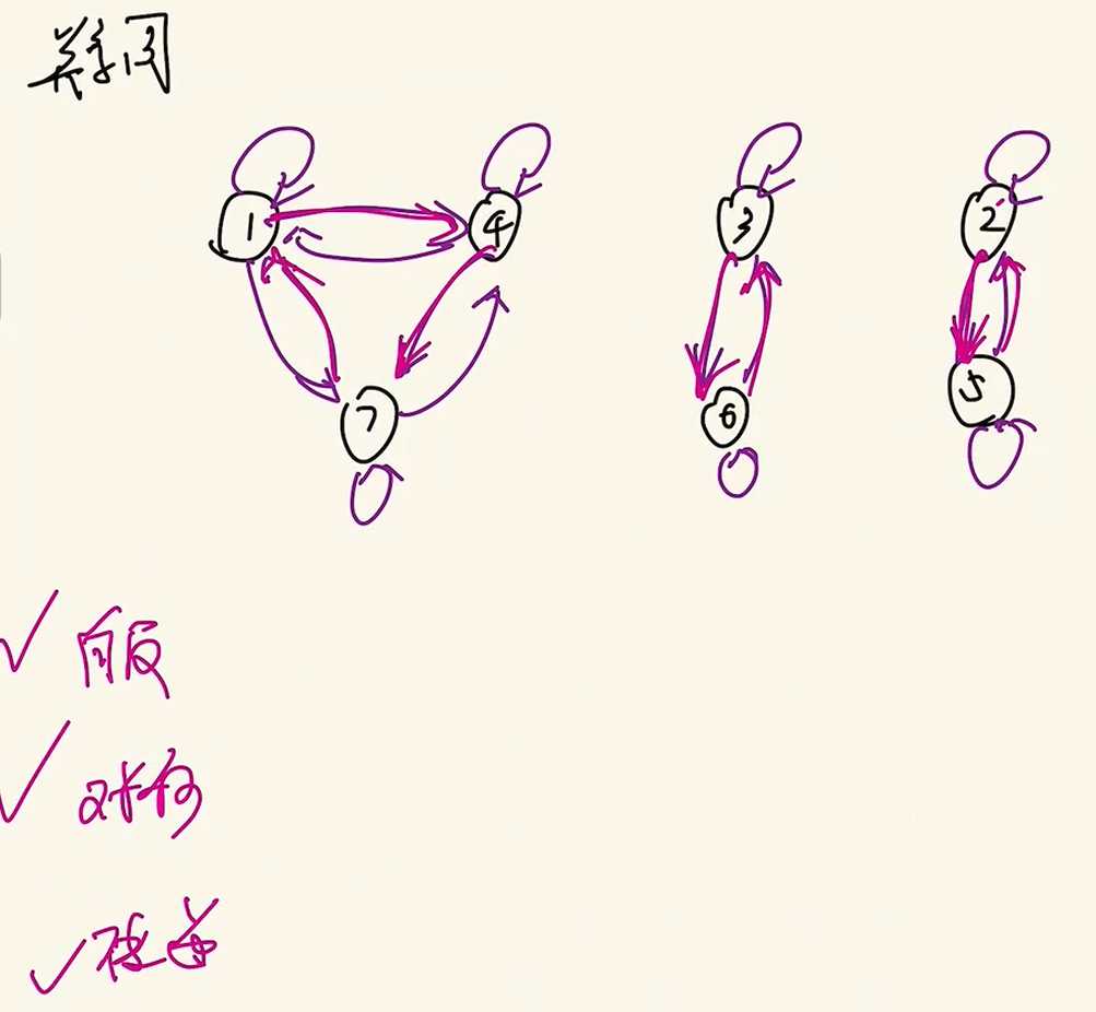 - 强连通:在有向图中,任意两个顶点之间都存在双向可达的路径