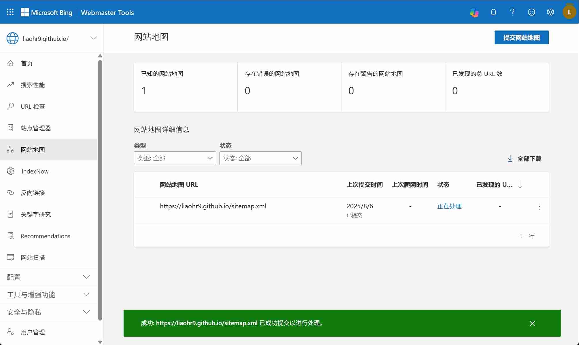 在 Google Search Console 和 Bing Webmaster Tools 中,分别提交你的 sitemap URL: